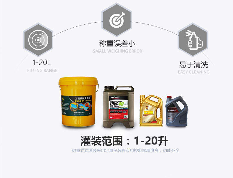 半自動油脂灌裝機適合各種不同粘稠度的油脂油類,能兼容瓶型、桶型的灌裝,可用于潤滑油、機油、花生油、食用油、大豆油、橄欖油等灌裝