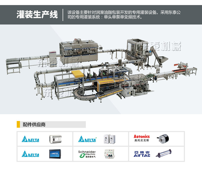 • 全自動柱塞式潤滑油灌裝線是我公司精心設計的新款灌裝機,本伺服柱塞灌裝機,采用PLC和觸摸屏自動化控制,具有計量運行平穩、噪音低、調節范圍大、灌裝速度快等優點。而且對易揮發、易...